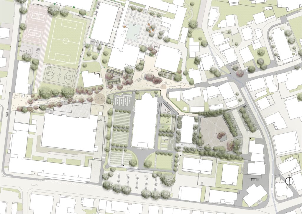 Die Entwicklung verfolgt eine mehrschichtige Zielsetzung. Die Transformation des Alten Turnplatzes – heute primär Parkplatz und Veranstaltungsfläche – hin zu einem lebendigen, flexibel nutzbaren und atmosphärischen Zentrumselement, ist dabei ein zentrales Anliegen.