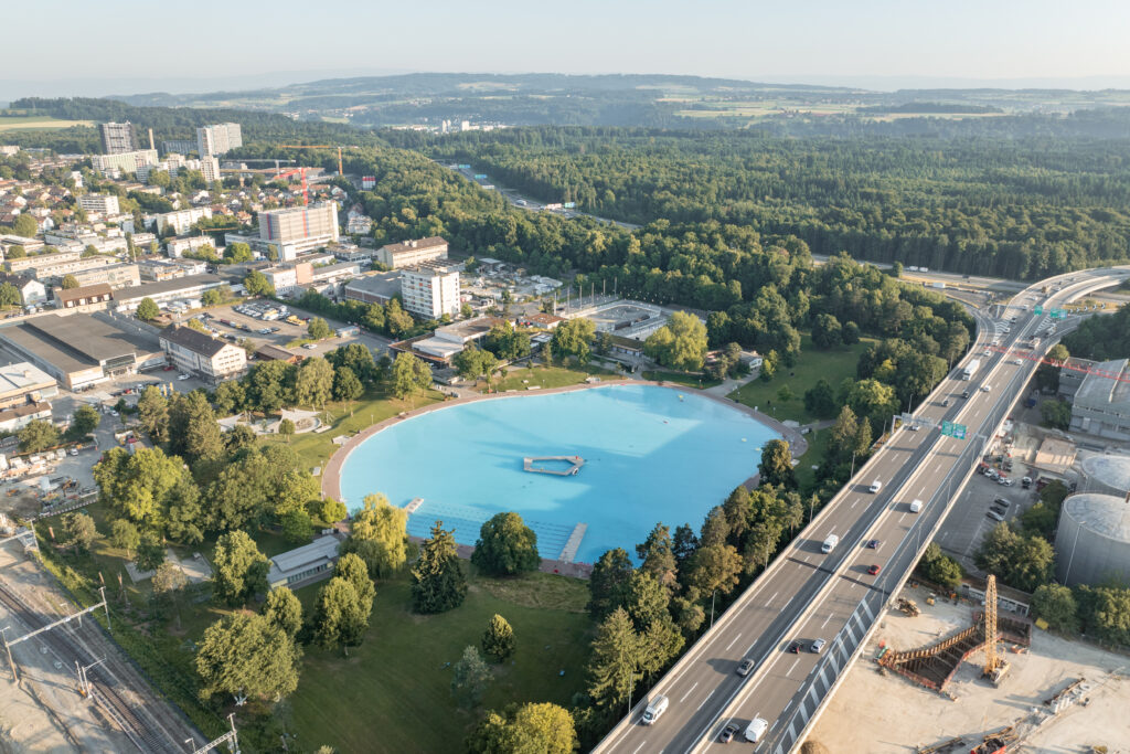 Das Freibad zählt mit seiner grossen, seeartigen Wasserfläche von knapp 15’500 m² zu den grössten Freibädern Europas. Das Bassin wurde seit dem Bau 1958 mit Grundwasser versorgt. Da der meiste Teil des zugeführten Wassers im Boden versickerte, wurde 1971 eine grossflächige Abdichtung mit Bitumen vorgenommen. Trotzdem gingen bis zur Sanierung täglich ca. 600 m³ des zugeführten und aufbereiteten Wassers verloren. Damit entsprach der Zustand nicht mehr den geltenden Gewässerschutzvorschriften und den behördlichen Auflagen. Zudem war die Badewasserqualität aufgrund der geringen Durchmischung ungenügend.